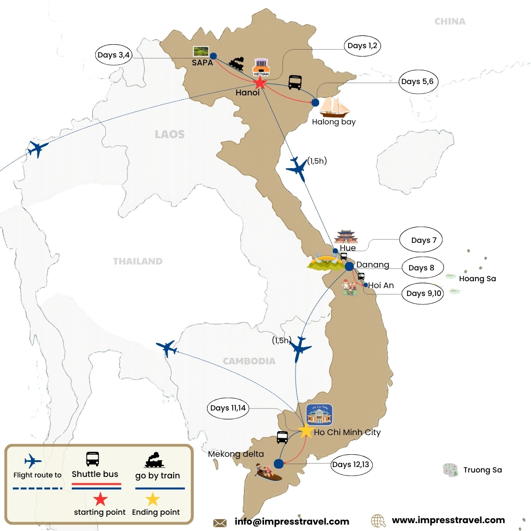 After breakfast, tour guide and private car to pick up for tour to explore the countryside in Hoi An and take part in the local activities as fishing, biking, farming and cooking class. This day itinerary as following: