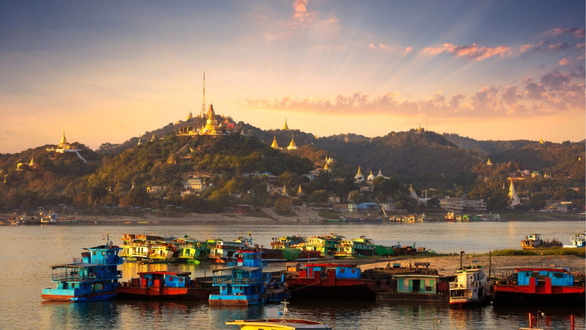 • Continue sightseeing around Bagan and its surrounding countryside, discovering lesser-known pagodas and scenic landscapes that add to the region’s timeless charm. In the late afternoon, transfer to the river jetty to board a private wooden boat for a relaxing cruise along the Irrawaddy River.